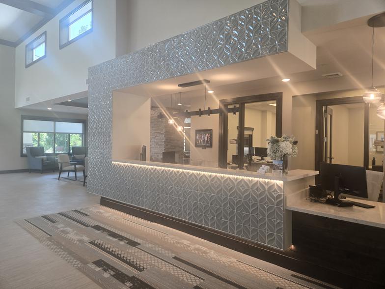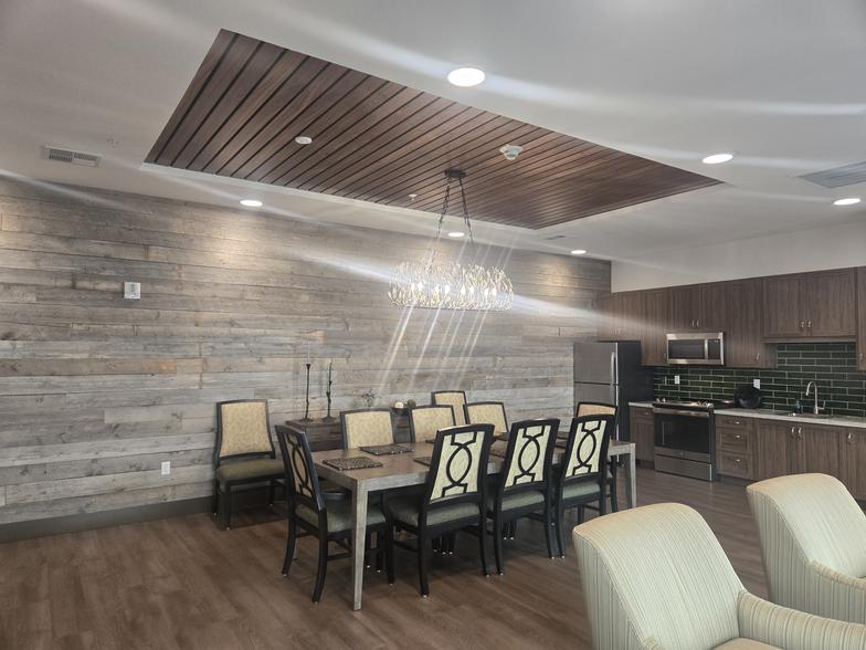 Eyre Interiors collaborated with a local Designer on this project to enhance this Memory Care Facility with warm, earthy elements of Tuscany. Eyre Interiors worked with materials selection and placement and provided the CAD drafted plan set to the Architect.