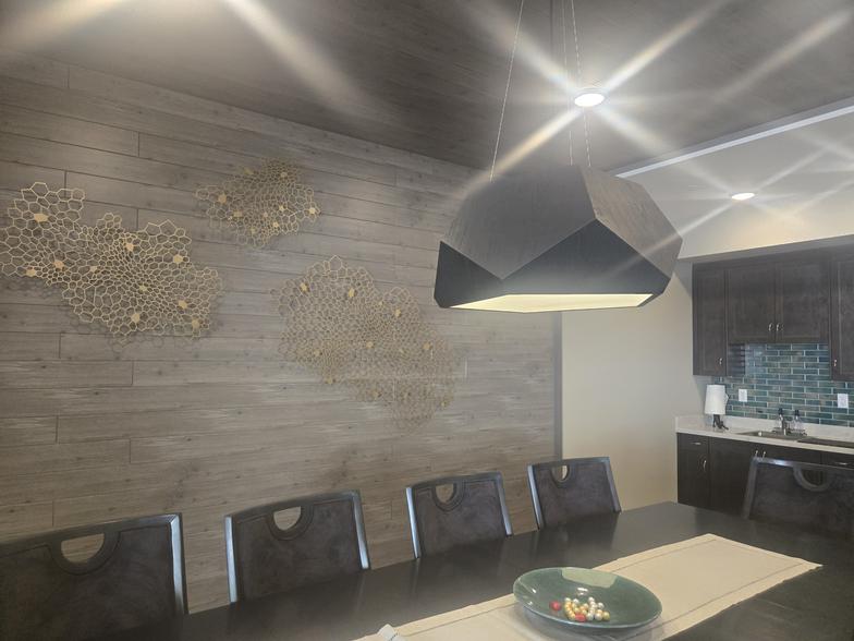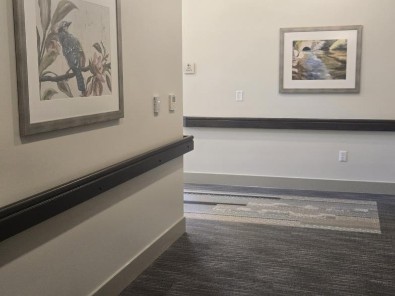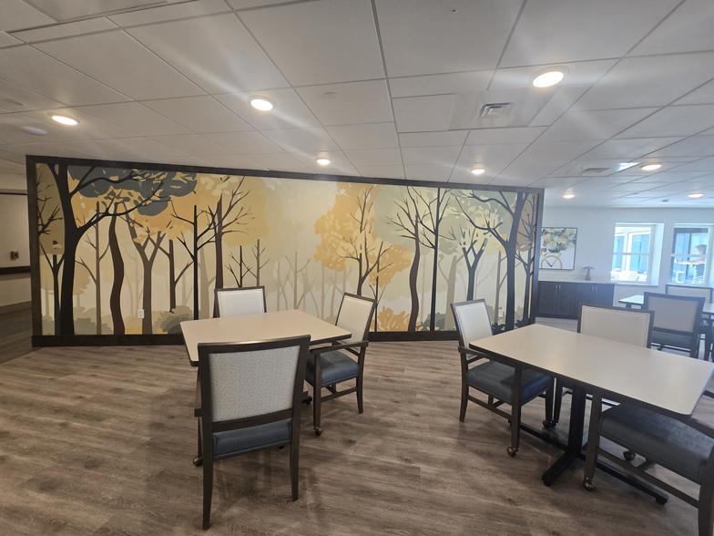 Eyre Interiors collaborated with a local Designer on this project to enhance this Assisted Living and Memory Care Facility with details that reflect the history of the town, specifically farming and trains. Eyre Interiors worked with materials selection and placement and provided the CAD drafted plan set to the Architect.